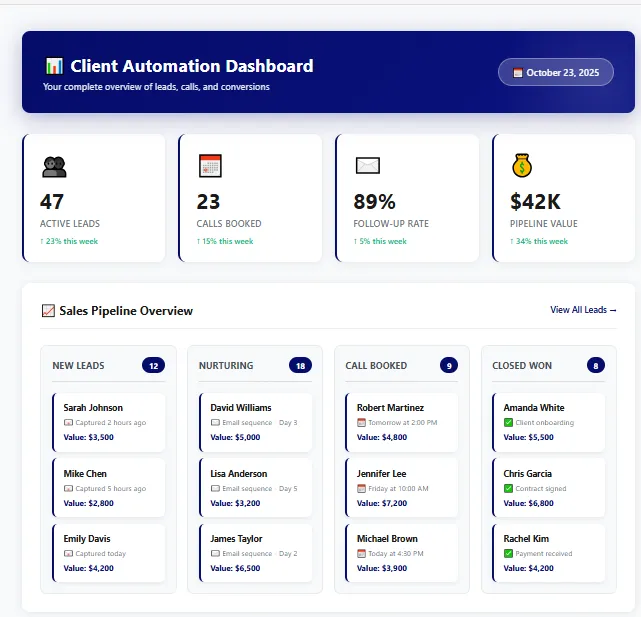 I build a custom GoHighLevel system that handles your entire lead-to-client journey automatically.
